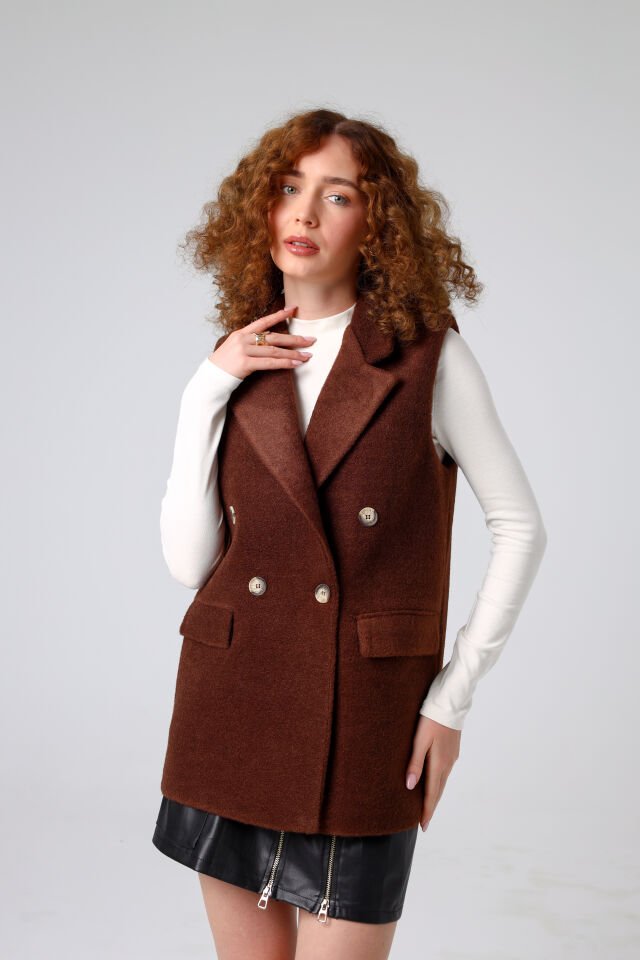 Uzun boy kesimi ile rahat bir kullanım sunar ve şık bir görünüm sağlar.; - Relaxed kalıbı sayesinde gün boyu konforlu bir deneyim yaşatır.; - Dokuma kumaş yapısı, dayanıklılığı ve kaliteli dokunuşu ile öne çıkar.; - Yetişkin kadın ve kızlar için uygun tasarımıyla geniş bir kullanıcı kitlesine hitap eder.; - Koyu kahverengi rengi, kolay kombin yapabilme imkanı sunar ve her ortama uyum sağlar.; - %100 polyester materyal bileşeni, uzun ömürlü kullanım vaat eder.; - Kruvaze yaka tipi ile modern ve zarif bir stil oluşturur.