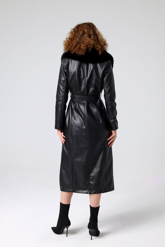 - Şal yaka suni kürk detayı, klasik ve sofistike bir hava katar.